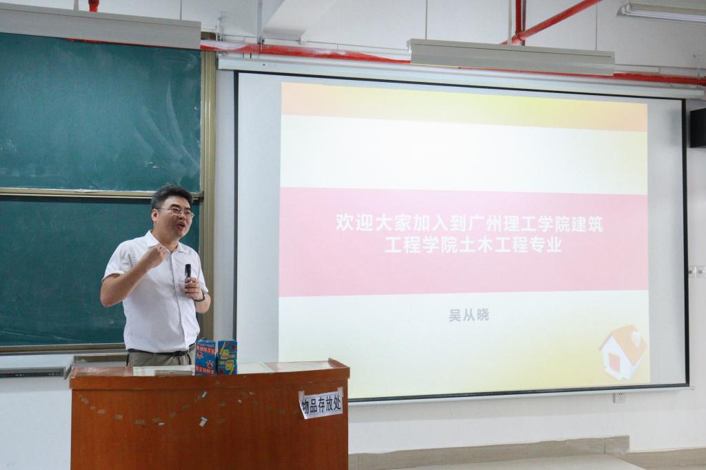 吴从晓老师简单的介绍了学校的变化,对新生选专业的疑惑进行排解。阐明了土木工程的范围以及未来的就业前景,解答土木工程师的职业形式。最后他表示在大学的时间很短暂,要好好珍惜时间,并且表达了他对每位新生的期待。