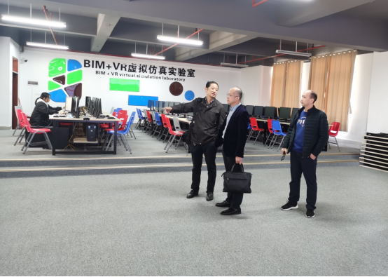 会后,一行人员参观了我校的BIM+VR虚拟仿真实验室。