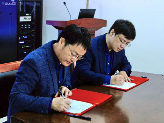 在与会人员见证下,伏焕昌与赵祺代表双方签订校企合作协议,共同为“广州理工学院——墨点狗智能科技CPS建造联合实验室”揭牌。