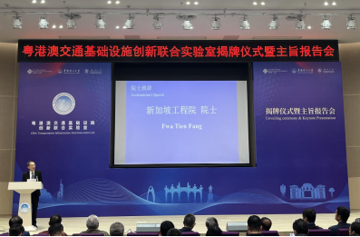 在揭牌仪式上,我校代表成员一行与来自粤港澳三地的政府官员、企业家、学者及社会各界人士共同见证了这一历史时刻。联合实验室的成立旨在加强三地在交通基础设施领域的创新合作,以提升区域整体竞争力,推动粤港澳大湾区建设。这一活动标志着粤港澳三地将在交通基础设施领域展开更加紧密的合作,推动区域经济和科技的发展。会上,听取了Fwa Tien Fang院士和香港理工大学冷真教授针对交通行业发展的前沿热点问题的主旨报告。