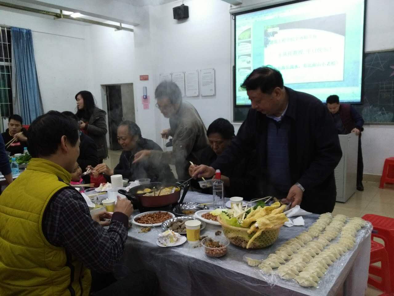聚餐开始,全院老师尽情地享受着自己动手制作的美味佳肴。卤猪蹄、卤凤爪、黄澄澄花生米、还有满屋飘香东北饺;丰盛的佳肴,热腾腾的火锅吸引一众食客垂涎三尺。