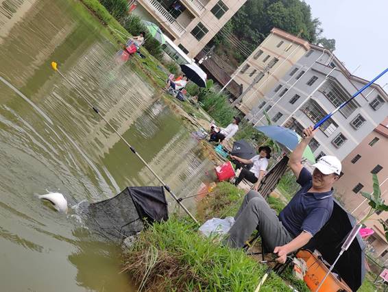 随着裁判长一声令下,钓鱼比赛正式开始。在风和日丽、春光迷人的钓鱼场,参赛选手们摆开阵势,打开钓竿,挂上鱼饵,纷纷抛竿。钓者、观者共享其乐,欢笑声萦绕在整个钓鱼场。