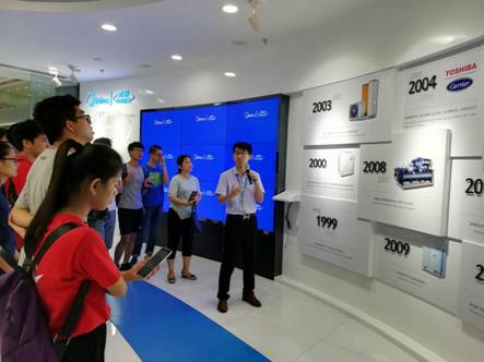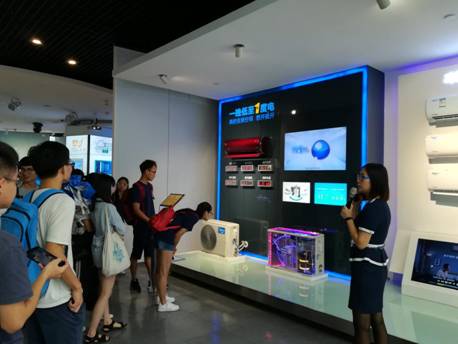 在胡经理和杨经理的介绍下,师生们了解了美的的发展历史和公司规模,参观了已经上市的产品线,小到一个风扇,大到中央空调机组,全部体现了节能性与智能化。大家参观了智能家居与家电,开阔了学生的视野。然后进入美的商用空调生产车间,各条生产线及所有配件都整整齐齐的放置在规定地点,洁净,顺畅,大量使用机器人代替人工,非常智能化。然后参观了美国全球创新中心,使同学们了解到本专业现在的科技发展水平,加深了学生对专业的认知,对专业的信心,小专业,大智慧,需要科技,需要创新,这些都来自于人才,所以学好专业课,使自己成为行业的专家,这就是同学们的奋斗目标。