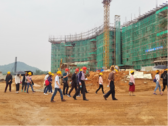 调研组受到广外增城实验学校项目建设项目负责人王智洪处长的热情接待。王智洪处长对项目的建设进度情况做了相应的介绍,我院教师就项目建设各分部工程的进度进行了探讨,以及了解项目建设后期的进度情况。