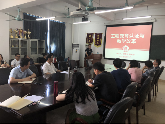 (通讯员:王丽平)5月24日,为了进一步推进工程教育专业认证工作,122cc太阳集成游戏特邀请广东工业大学土木与交通工程学院土木工程系主任何嘉年副教授来讲学,何教授以“工程教育认证与教学改革”为题,在9栋306会议室为大家带来了一场精彩的学术讲座。讲座由吴炎海院长主持,我院全体教师参与了此次专题讲座。