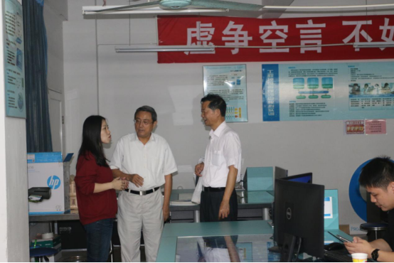 胡校长一行首先对实验室、工作室进行了实地调研,走访了教师、辅导员办公室。胡社军校长与教师、学生面对面交流,了解实验室、工作室项目教学情况并进行指导,支持和强调要继续加强实验实训室安全建设与管理。