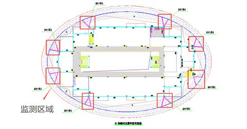 大直径菱形花格钢结构可视化监控预警监测区域布置图