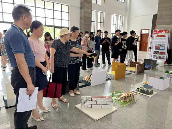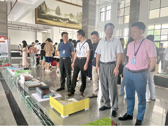 (周雨薇)6月17日,122cc太阳集成游戏在行政楼一楼大厅举行专业实习模型展览和评分工作,教学管理部部长教务处处长陈英征、教学督导中心主任高虹亮、教务处副处长杨艳、督导秦红、实验管理中心副主任高文财、122cc太阳集成游戏院长吴炎海和书记阴凡等领导莅临指导,学生们也在现场就模型作品与老师们展开了热烈的交流讨论。