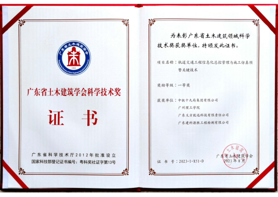 近日,2023年(第十一届)广东省土木建筑学会科学技术奖获奖项目名单公布,经过申报、初审、网评、答辩、终评和公示等环节,我校与中铁十九局集团有限公司牵头完成的科学技术成果《轨道交通工程信息化总控管理与施工仿真预警关键技术》荣获一等奖。