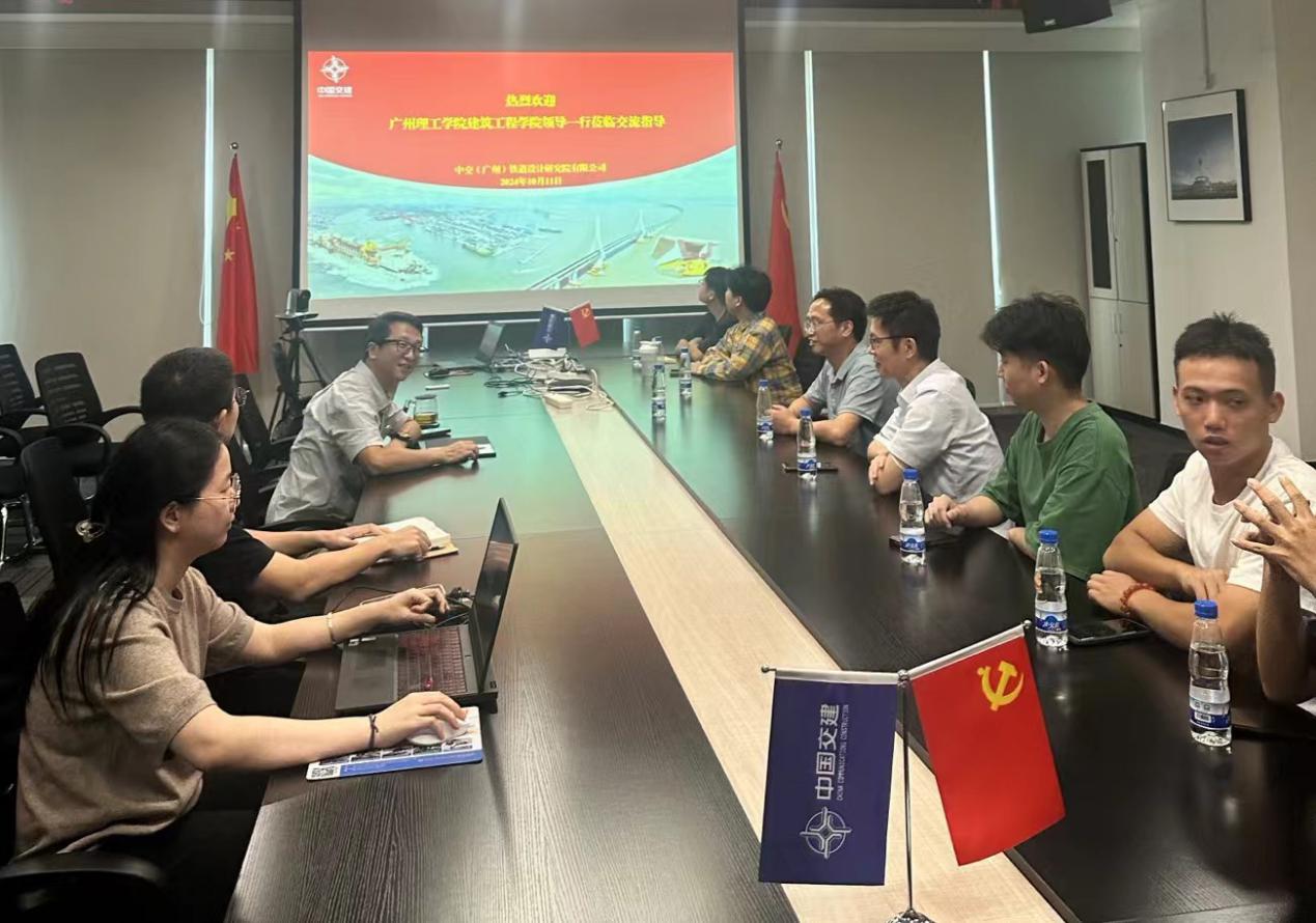 学院积极推进毕业论文(设计)选题实习工作,帮助同学们掌握专业市场知识,提前了解职场环境,服务毕业生就业工作。2024年10月11日,在侯庆华老师、叶涛老师的带领下,与做毕业论文(设计)的同学一起,向校企合作基地——中交(广州)铁道设计研究院有限公司的领导学习交流。