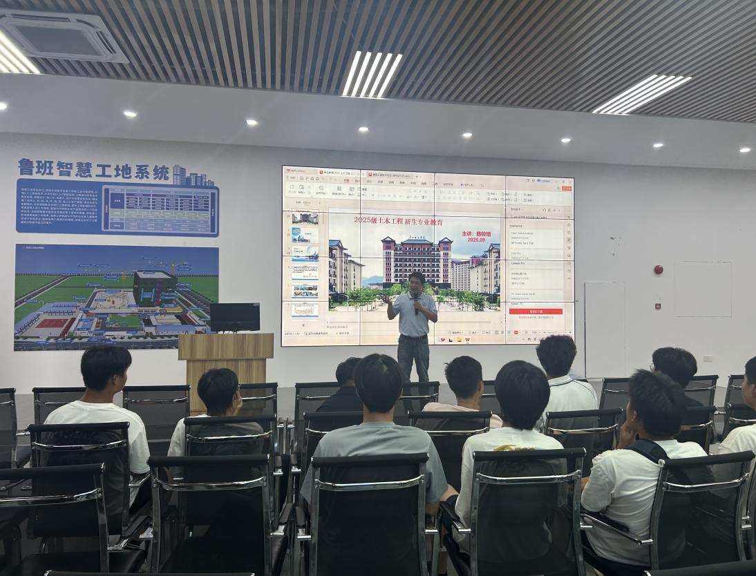 企业发展与职业规划环节,广州理工学院蒋浩然博士为新生解读行业趋势。他提到,当前建筑行业正从“传统建造”向“智能建造”转型,雅鲁藏布江下游水电开发、新藏铁路、中俄天然气管道等国家级重大项目,对具备数字化技能的人才需求迫切;广东作为建筑业大省,2024年建筑业总产值达2.52万亿元,虽 2025年上半年增速有所波动,但土木工程细分领域仍保持15.3%的增长。蒋浩然博士结合中建四局、广东省建筑设计研究院等合作企业的招聘需求,建议新生提前考取一级建造师、造价工程师等职业资格证书,关注 “智慧造价”“绿色建造”等新兴方向,为进入头部企业积累竞争力。