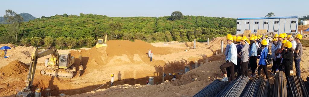 11月1日下午,由122cc太阳集成游戏张威威、陈奕、阴凡3位老师带队,122cc太阳集成游戏工程造价162班的53名学生做为第一批学生前往增城校区进行工地实践教学。