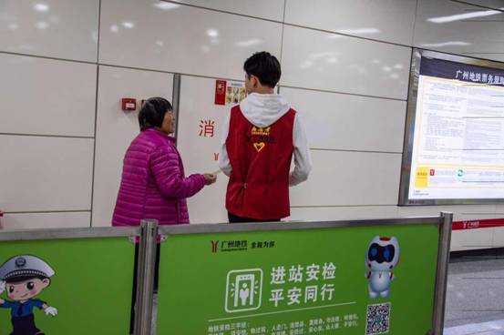 志愿者为乘客解答疑问、帮助不会用卡机的老年人进站