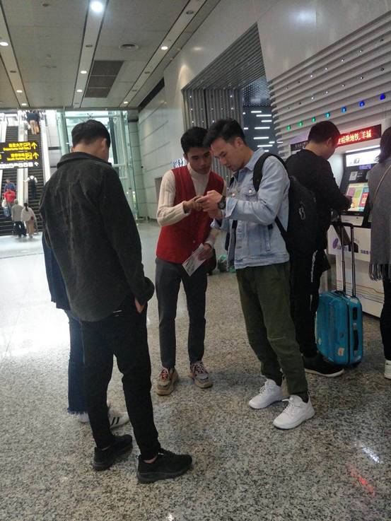 志愿者协助乘客购票