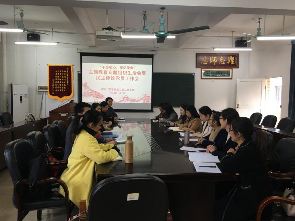 12月6日,按照学校党委部署要求和统一安排,我院教工第二党支部举行了“不忘初心、牢记使命”主题教育专题组织生活会暨民主评议党员工作会。会议由教工第二党支部副书记黄佩佩同志主持,二支部全体党员参加了会议。