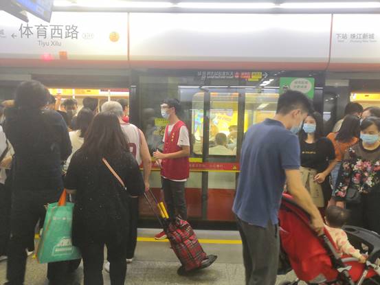 林和西地铁站的志愿者们在工作人员的带领下来到地铁站,听从工作人员的安排并分成几组分别在自动售票机、电梯口、站台等地方进行志愿活动。志愿者们帮助乘客使用购票机购票,引导乘客乘车以及为乘客指引搭乘路线。体育西路地铁站人流量大换乘点多,志愿者们负责对人流进行疏通,以防拥堵,对上下车乘客进行安全指引,为不熟悉换乘路线的乘客进行指导,对上下扶梯的乘客进行安全告知。