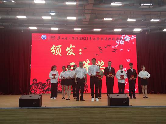 (通讯员:黄健明)5月12日上午,校党委在13栋报告大厅举办大学生讲思政课比赛,作为“三全育人”素质教育周的大型活动之一。参加本次活动的人员有学校党政领导、各二级学院党总支书记、全体班级学生参加了现场观摩学习。我院元锦涛同志参加此次比赛。