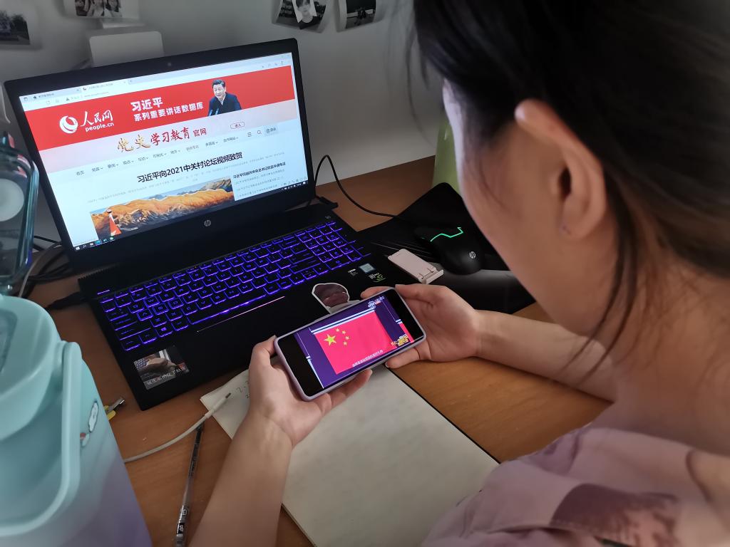此次奥运思政大课由马龙、杨倩、许海峰等人担任主讲人。这个夏天,中国体育代表团在奥运会和残奥运会赛场上,披荆斩棘,闪耀东京。中国奥运健儿正以硬实力讲述着一个发展中大国的拼搏故事,以自信和自强彰显了国家发展进步的新刻度。直播结束后,学生党员纷纷讲述了自己观看直播的体会和感悟。
