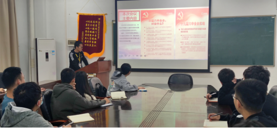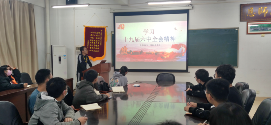 (通讯员:戴小慧)11月22日,我院学生第一党支部专题学习十九届六中全会精神。全体在校党员及预备党员参加会议,潘海鑫同志主持会议。