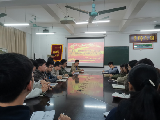 支部书记郭涛对本次大会做出总结,他指出作为预备党员所要具备的品质和要求,提出要运用所学的专业知识发挥所长,积极参加学科竞赛,做好党员先锋模范作用,并希望大家积极参与支部工作,不忘初心,牢记使命,争做优秀共产党员。