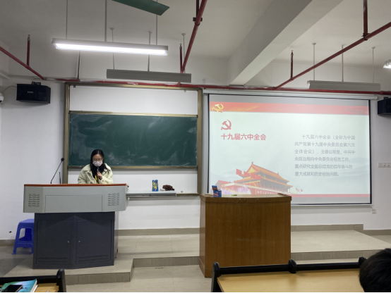 (通讯员:姚晓萍)11月24日晚,为学习贯彻党的十九届六中全会精神,深刻认识党的百年奋斗重大成就和历史经验的重大意义,我院学生第一党支部组织预备党员、发展对象于13栋504开展学习“十九届六中全会精神”主题会议,本次会议由姚冰婷同志担任主持人。
