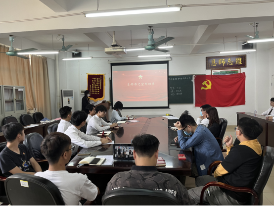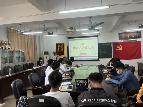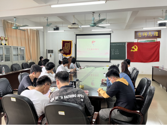 陈锦涛等4位发展对象依次上台汇报个人情况、入党动机及日常表现。发言完毕后,全体党员进行民主评议,针对其在过去时间内思想觉悟、支部活动参与度和贡献度、处事作风等方面做出了客观、公正的评价,由入党介绍人根据对发展对象一年来的培养和联系,说明对申请人的介绍理由和考察情况。通过无记名投票评选,会议同意4位发展对象接收为中共预备党员。