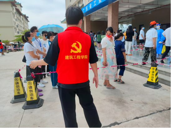坚守初心使命,彰显党员担当。志愿者们秉持着全心全意为人民服务的宗旨,为现场进行检测的师生和医护人员提供帮助。他们走在前头,干在实处,让党旗飘扬在战“疫”的第一线,也飘扬在人民群众的心中,传递着战“疫”中鼓舞人心的力量。