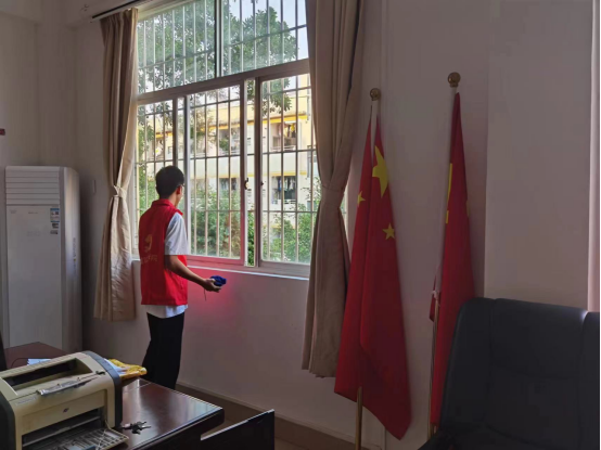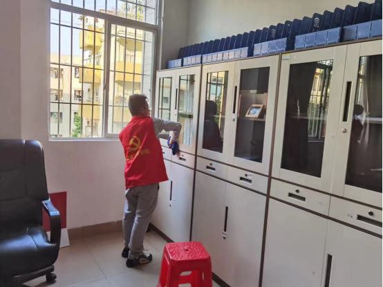 志愿者在擦窗和柜子