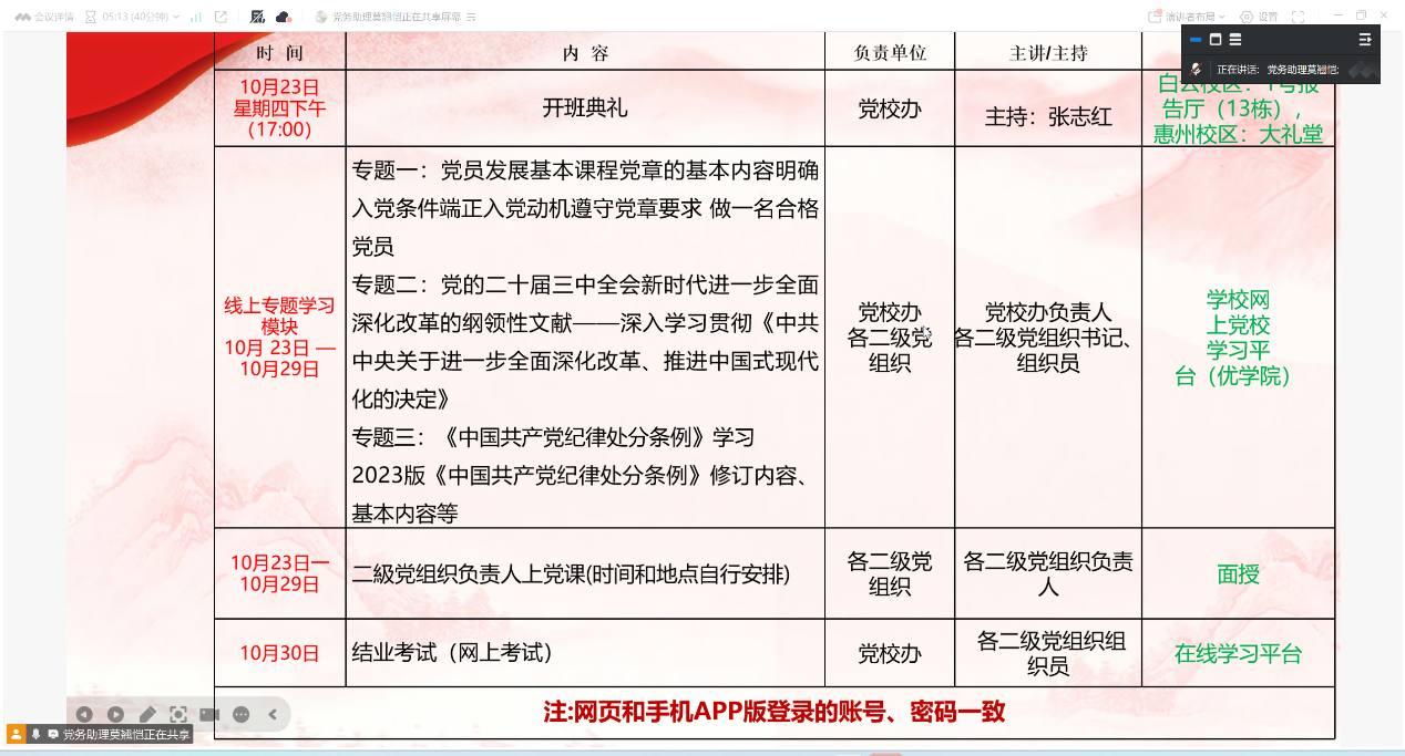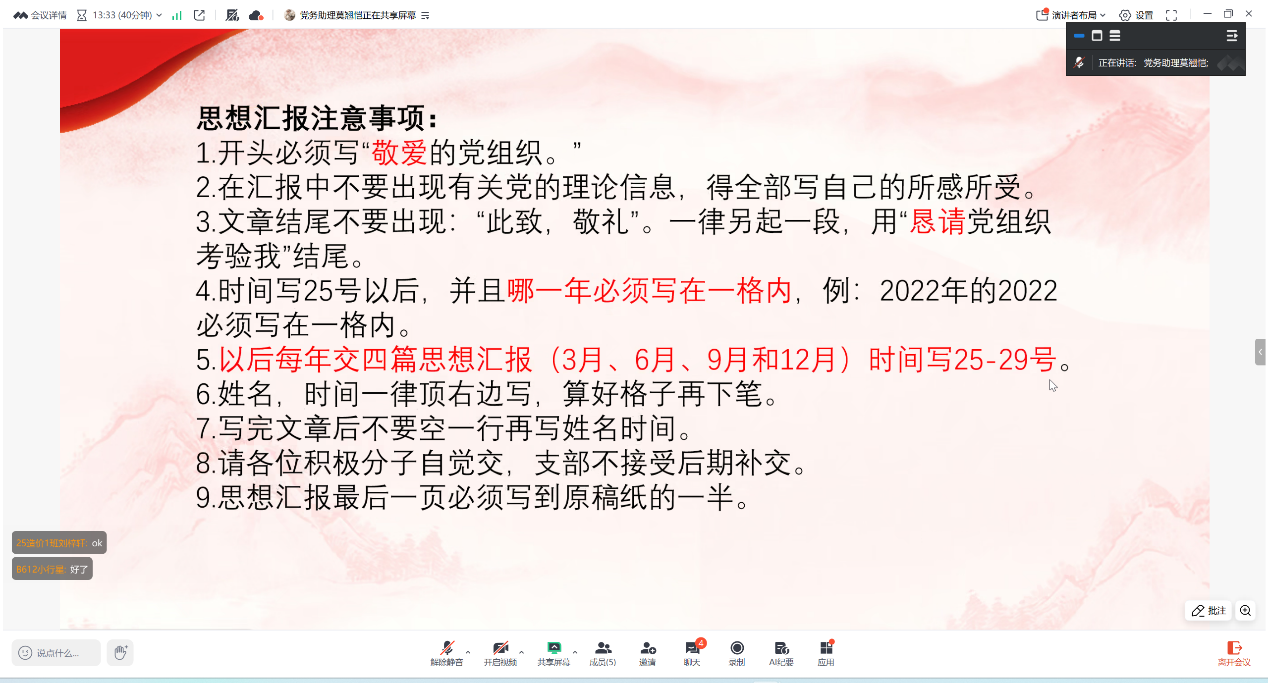 10月23日,为进一步加强入党积极分子队伍建设,夯实党员发展工作基础,激发广大积极分子的政治热情和行动自觉,我院学生第一党支部在线上召开2025年第二期入党积极分子动员大会。2025年第二期入党积极分子参加本次会议,莫翘恺同志主持会议。