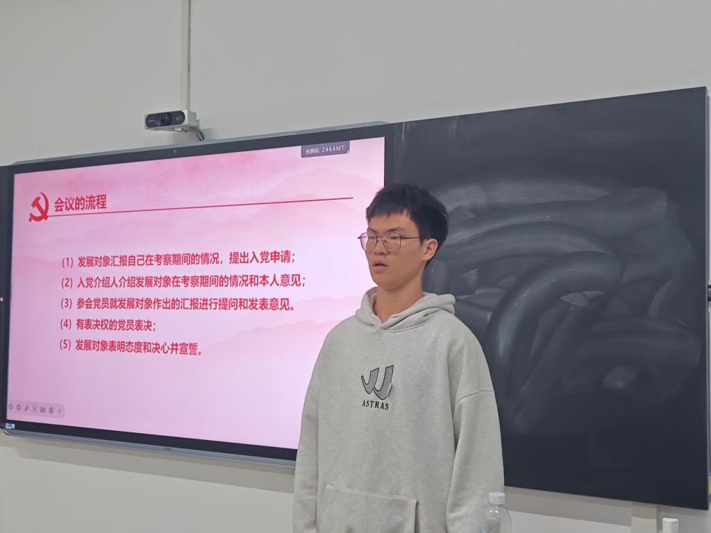 (通讯员:周梓桦)12月4日晚,为严格遵守党的章程与发展党员工作要求,进一步充实党员队伍、强化党组织活力,122cc太阳集成游戏学生第二党支部在6栋102教室召开2025年第2期接收预备党员大会,专题讨论李俊杰同志转为预备党员事宜。学生第二党支部书记姚章泽、支部全体在校党员及预备党员参会,杨梓怡同志主持会议。