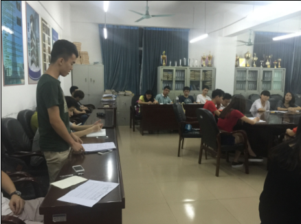 会上,各班级代表踊跃发表自己班级班风的现象和整顿方法,且阐述了整顿班风时发现的不足及解决方案。对于各班代表的发言,李华东书记作出总结:为了营造更好的班风,班上的每个人都很重要,而班干部更要自我约束作为表率,并且要调节好内部工作管理好班级。