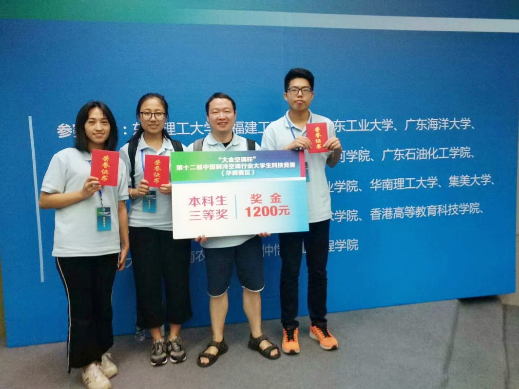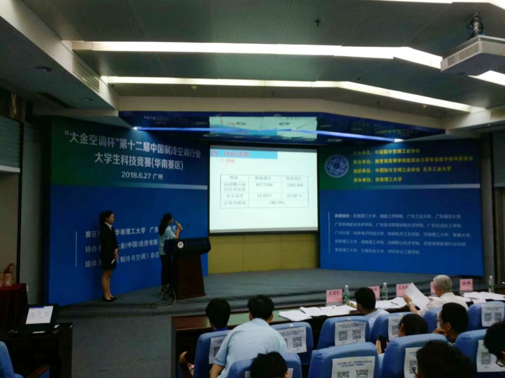 比赛的第二个环节在华南理工大学逸夫人文馆举行。本环节比赛包括创新作品答辩+专业知识竞答。上午的比赛是创新设计答辩,在答辩过程中,吴德绳老师为我校参赛选手的作品设计思路以及老师们的指导点赞。在这过程中,参赛选手旁听其他参赛队伍的设计作品,发现有很多思路和想法值得学习,让选手们懂得生活皆有创新,创新始于观察。下午是知识竞赛。最后通过努力,我校在“大金空调杯”第十二届中国制冷空调行业大学生科技竞赛中获得三等奖。