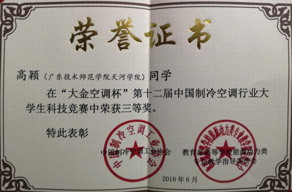 6月26日—6月27日,122cc太阳集成游戏建环专业学生高颖、林雅欣、吴冰冰同学组成“对对队”团队,代表我校参加了“大金空调杯”第十二届中国制冷空调行业大学生科技竞赛,经过约克工厂实操+创新作品答辩+专业知识竞答三个竞争激烈的比赛环节,最后获得科技竞赛三等奖。