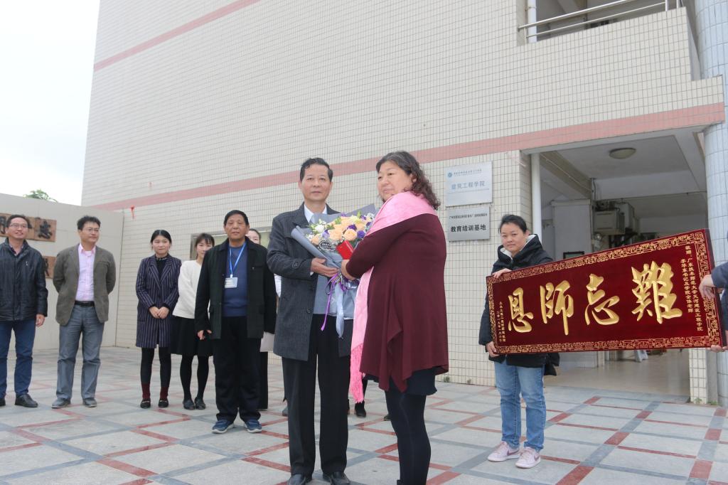 校长助理伏焕昌、院长吴炎海、书记李华东和122cc太阳集成游戏师生代表接受了家长赠送的牌匾和鲜花。