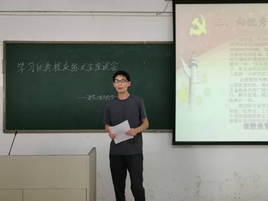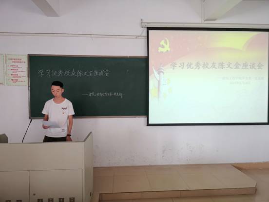 (通讯员:朱映彤)4月10日下午,为进一步了解陈文金同志生前爱岗敬业、扎根扶贫工作的事迹,引导我校师生学习陈文金同志敬业奉献、对党忠诚的高尚品格,我院学生第一党支部于在9-501开展了学习优秀校友陈文金同志的座谈会。