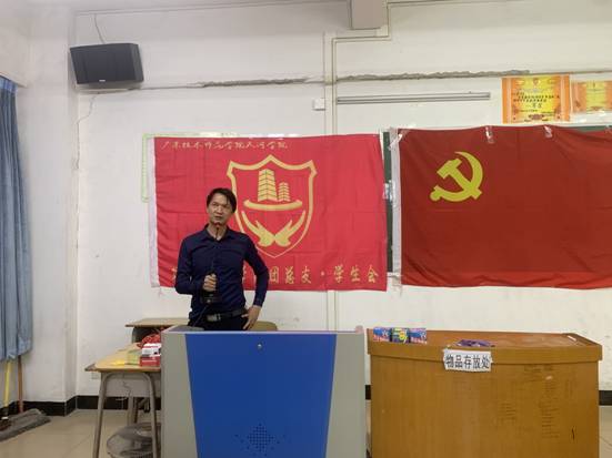 大会第一项议程由团总支·学生会代表刘嘉婵、朱艳媚、廖华利介绍了共青团的性质、团员权利及义务,还介绍了学生会各个部门的职能以及工作,展现了学院的风采。大会第二项议程由学生第一党支部委员陈晓汕介绍了党支部的工作性质,并向我院2019级新生解释入党的意义和如何端正入党的动机,紧接着详细地介绍了入党的流程。会议第三项议程由学生会主席汪益森代表团委书记郭梦雅老师发言,介绍了在组织学习与毕业后在工作中的联系,鼓励新生主动参与学校活动,提高自我,为日后的工作做铺垫。会议最后一项议程由我院党总支副书记黄良辉分别从生活、学习、政治追求三方面向新生介绍了大学生活,希望他们能在大学四年里学有所成,充实地过好每一天。