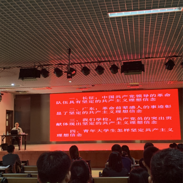 本次讲座罗君辉书记从长征、广东、学校和青年大学生怎样坚定共产主义理想信念四个方面来讲。君罗辉老师给大家详细地讲解了长征过程的艰辛,并以播放电影短片的形式,举了几位忠于党的教育事业的教师和为党和人民做出突出贡献的校友来激励大家要坚定共产主义理想信念。
