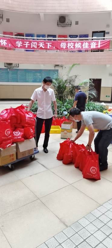 我院教师搬运领取“爱心餐包”