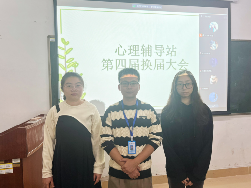 会议第一项议程,陈冠同学向我们宣读第四届心理辅导站学生成员的人事安排:22土木2班邓可恩担任新一届学生负责人;23土木2班徐妙祺与23造价2班李乐欣为策划部成员;21工管3班(Z)陈冠担任通讯部部长,23造价2班杨斯凯为通讯部成员。