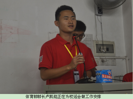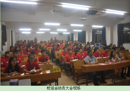 为充分调动运动员的积极性,保障校运会各项工作的顺利开展。11月18日晚,我院校运会动员大会在4#101举行。我院党总支书记李华东、办公室主任杨惠、团总支书记钟任鹏、团总支学生会全体成员以及我院全体参赛运动员出席了本次会议。
