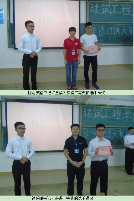 比赛共分二个环节,分别是自我介绍及即兴演讲。比赛中,各位选手表现从容,并凭借着他们流利的口语、良好的姿态及优秀的表现赢得现场观众的阵阵掌声。经过两个环节的激烈角逐,最终由李世洲赢得本次大赛的一等奖,朱万章荣获二等奖,张欢、曾玉翠获得三等奖,柯少峰、马菲、曾子芙、何晓杰分别获得优胜奖。比赛结束后,评委代表李志坚就参赛选手的英语读音,演讲手势以及与观众的眼神交流等细节性问题进行点评,并希望选手们在未来学习上能更上一层楼!