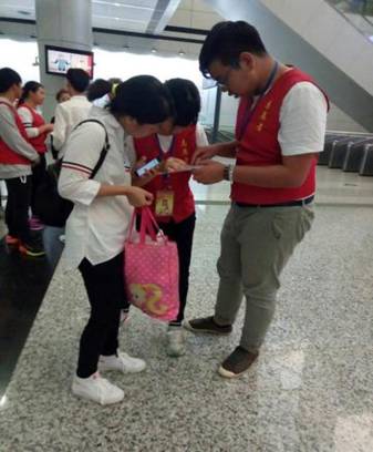 在地铁站,为给乘客更好的服务,联络员们认真学习附近地铁线路,熟悉各种办事流程和分工合作。志愿者们有的负责引导乘客进出地铁、有的负责维持秩序、有的负责协助乘客买票。在这过程中,志愿者们面带微笑,积极耐心地为乘客服务。当面对乘客们询问时,联络员们会认真地倾听乘客的诉求并想方设法地帮助乘客解决问题。与此同时,志愿者们的服务也得到了乘客们充分的肯定。