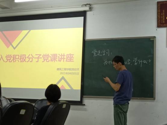 (通讯员:曹雅琳)为动员入党积极分子的积极性,学习党的精神,了解党的历史,4月1日晚,学生第一党支部和学生第三党支部组织2021年第1期入党积极分子于9栋306会议室开展入党积极分子党课讲座,学生第一党支部书记张威威主讲。