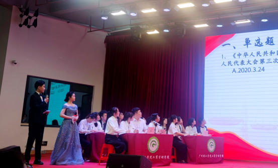经过初赛的激烈角逐,参与本次知识竞赛决赛的是从各学院预决赛中脱颖而出的九支代表队。决赛题型分为必答题、限时抢答题和冲关题。在比赛现场,参赛选手们认真思考,专心作答,从多个角度地介绍和诠释自己对法律知识的见解,完美地将自己对民法典的掌握和理解展现了出来。