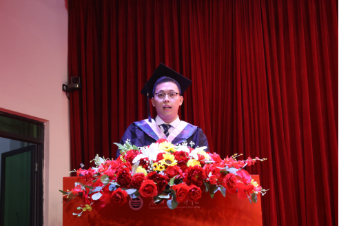 来自20造价3班的陈锐鹏优秀毕业生代表进行发言,他分享了自己在大学生活中的成长与收获,并表达了对母校的感恩与惜别之情。他请老师们放心,今后,我们一定牢记恩师们的教诲,运用我们所掌握的专业技能,勤于实践、踏实做事,一步一个脚印书写我们与众不同的人生。为学院争光添彩,用我们的努力和成功来回报社会,回报学校。同时,他也将用自己的行动践行新时代建工学子的使命担当,用扎实的专业知识与实践能力推动行业的创新和发展,为祖国的发展贡献出自己的力量。