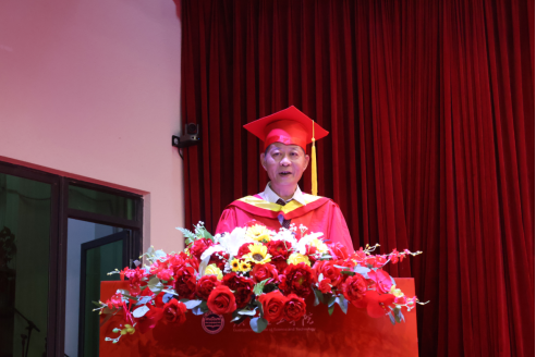 吴炎海院长在典礼上致辞,首先,他对同学们顺利毕业表示祝贺,并对同学们的努力和成就表示肯定。然后,吴院长提出了三点期望:一是希望同学们要保持学习的热情,要坚守良知与正义,要勇于创新,要敢于担当;二是希望同学们秉自强精神,传承优秀品格,以拼搏精神擦亮人生底色;三是希望同学们筑德行之基,守立身之本,以敬畏之心坚守底线操守。最后他代表学院向全体毕业生表示,母校永远是你们温暖的港湾和精神家园,请你们一定记住,无论将来飞得多高,走的多远,你们永远是广州理工的孩子。无论你们走到何处,我都希望广州理工学院122cc太阳集成游戏永远在你们的心中。希望你们常回家看看!同时祝福毕业生们前程似锦、扬帆远航,以“胜不骄、败不馁”的心态和自信,勇敢而顽强地迎接挑战、追求卓越。