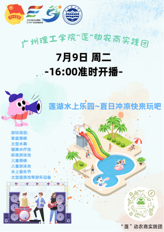 莲湖水上乐园的直播将在7月9日周二16:00,准时开播。