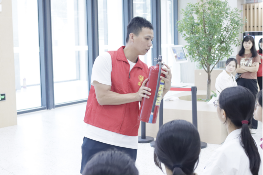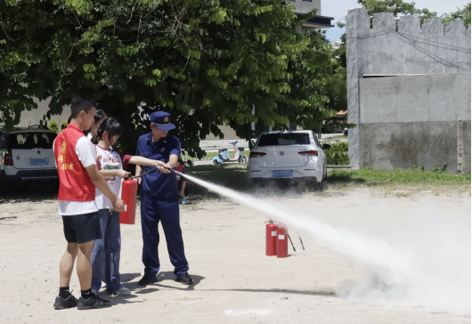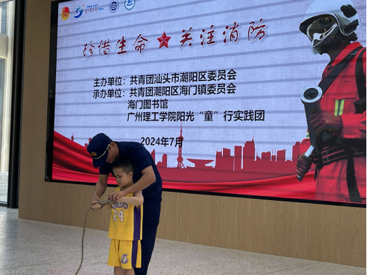此外,实践团与镇团委工作人员合作邀请到镇消防队消防员为大家介绍绳结的系法,同学们积极举手和消防员学习。最后,理论和实践相结合,实践团队员林鸿楷向同学们讲解并展示了灭火器的使用方法,他的讲解生动而具体,让孩子们在轻松愉快的氛围中,掌握了关键时刻能够保护自己的技能。