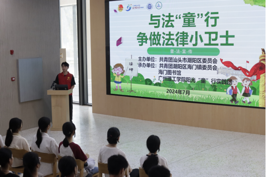 (通讯员:李胜楠)广州理工学院阳光“童”行实践团于2024年7月14日在汕头市海门图书馆成功开展了未成年人普法暨安全教育活动。实践团队员们讲解了包括普法、校园欺凌、防范性侵犯、禁毒等主题知识并普及灭火器使用方法,此次活动旨在提升当地未成年人的法律意识和安全意识,为乡村建设贡献力量。