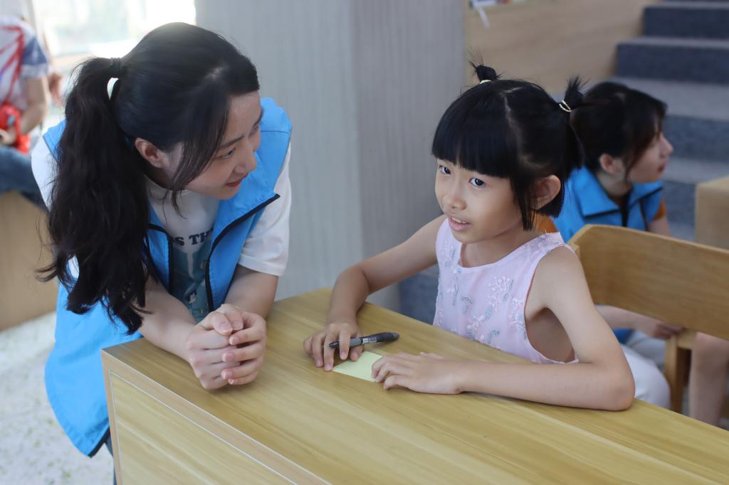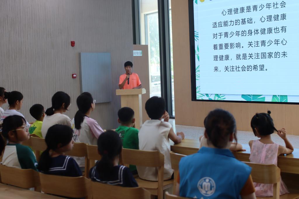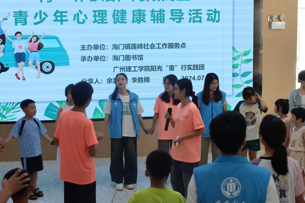 (李胜楠)为关注青少年心理健康,提高青少年心理素质和自我调节能力,海门镇莲峰社会工作服务点联合海门图书馆、广州理工学院阳光“童”行实践团于7月16日下午在海门图书馆举办了主题为“青”听心语,向阳而生的青少年心理健康辅导活动。